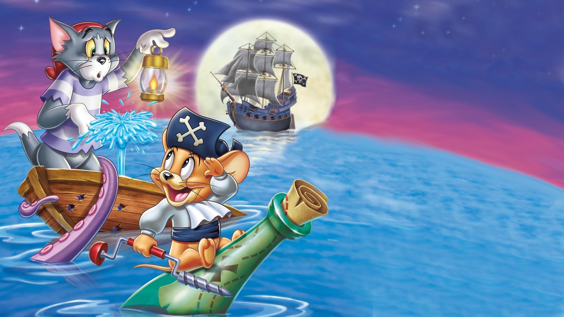 Overview: Dueling cat-and-mouse team Tom and Jerry hit the high seas on a hunt for buried treasure in this pirate adventure. The tale begins when crew member Tom sets sail with an infamous pirate and finds a treasure map along with stowaway Jerry. The furry swashbucklers race to a deserted island where X marks the spot, but along with battling each other, they must outwit ruthless buccaneers, angry monkeys and a giant octopus to strike it rich.